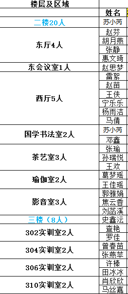 2022年5月23日—5月27日实训中心义务劳动学生名单及分工