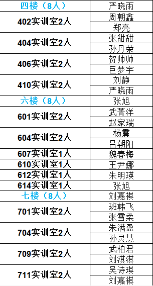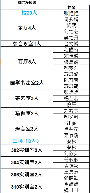2022年5月30日—6月3日实训中心义务劳动学生名单及分工